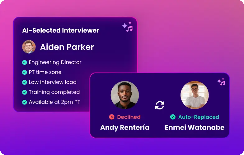 Instantly replace interviewers who decline — keeping hiring on track.